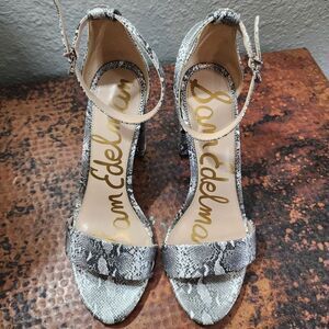 Sam Edelman Yaro Python-Embossed Leather Block-Heel Sandals 538