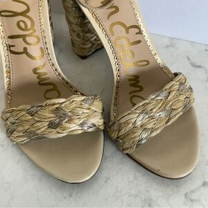Sam Edelman Women's Yoana Raffia Leather Ankle-Strap High Heels