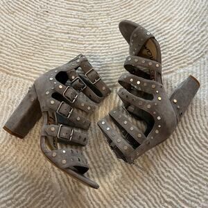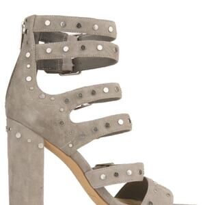 Sam Edelman York Grey Suede Leather Strappy Studded Heeled Sandals Size 6.5
