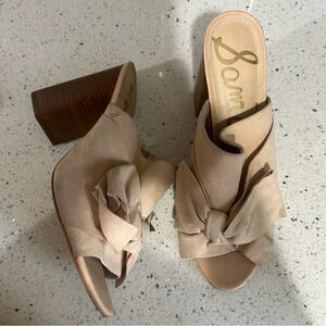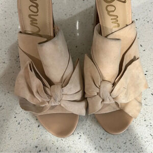 Sam Edelman Yumi Bow Leather Suede Mules Nude
