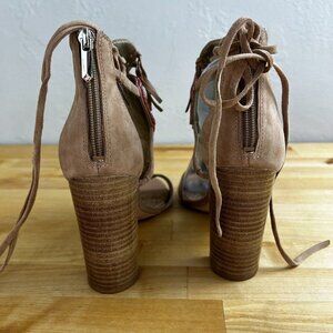 Sam Edelman Yvette Ankle Wrap Beaded Fringe Embellished Boho Sandal Heel 7.5