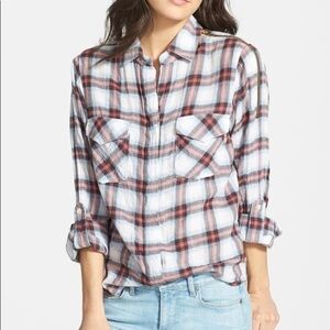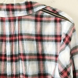 Sam Edelman Zip Shoulder Plaid Shirt Sz XS EUC