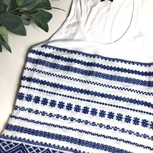Summary: Racer back style tank with festival style embroidery. Blue and White.