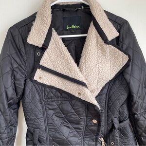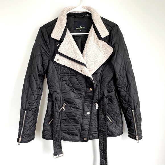Sam Edelman black jacket. Multiple zippers throughout. Jacket does show signs of wear, but still has some life left in it. Belted front. Any questions let me know!