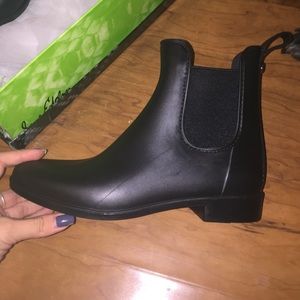 Sam Edelman black matter ankle high rainboots