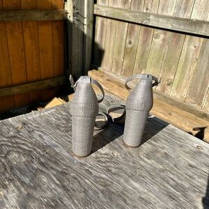 Sam Edelman block heel sandal, size 9 grey silver bridesmaid casual