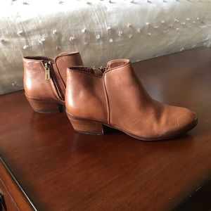 Cognac colored booties. Low heel. Used. Good condition. Size 6.