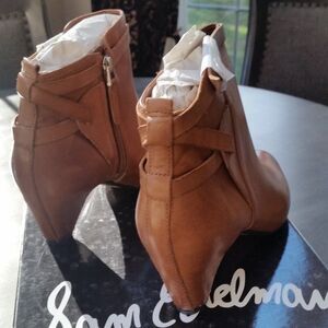 Round toe, Buckle strap detail, Side zip closure, Back pull-tab