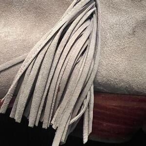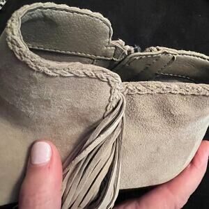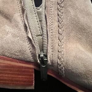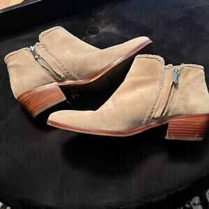 Sam Edelman Paige suede stack heel booties with fringe Sz 7.5 greige
