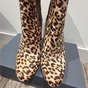 Step out in style with these chic leopard print ankle boots. Perfect for adding a bold touch to any outfit. Genuine calf hair