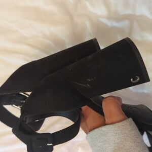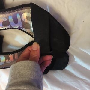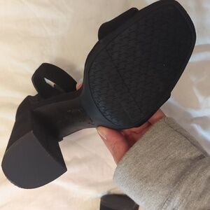 like new Sam elderman circus black chunky heel suede like rubber sole extremely comfortable size 8 very sturdy heel. the only sign of wear is minor to the back pictures show