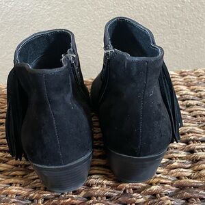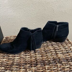 Sam Edelman black fringe booties for women