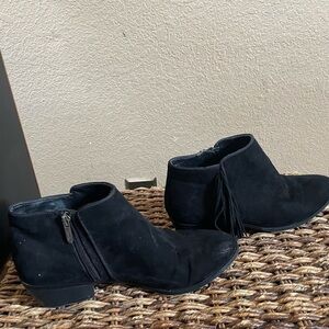 Sam Edelman circus black fringe booties Sz 8 1/2 or 8.5 women zip closure