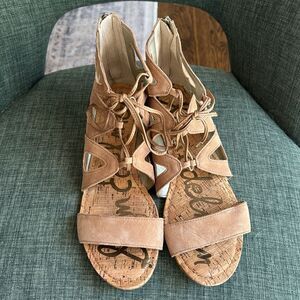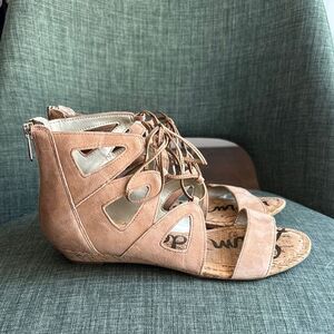 Sam Edelman leather Tan Sandals lace and zip gladiator flat women wedge size 9