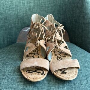 Sam Edelman Dawson suede leather Tan Sandals lace and zip gladiator flat women wedge size 9 NWOT