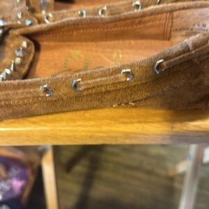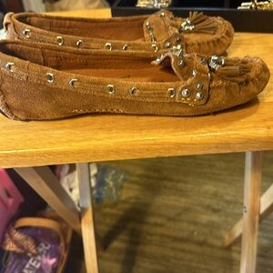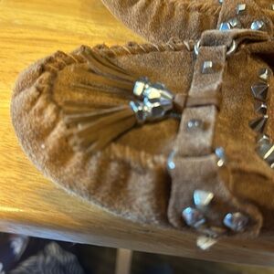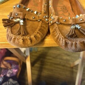 Sam Edelman moccasin shoes. Size 7 1/2. They appear to never been worn. They have studs across the front and tassels, embellished and silver the sides have silver holes with leather through each hole. The soles are absolutely clean and the insides appear to have never been worn. I took photos of everything.