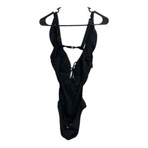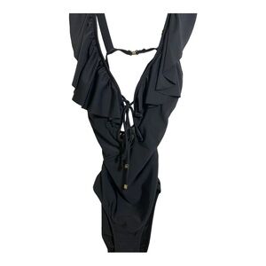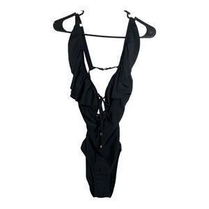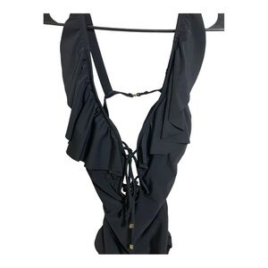 Sam Edelman one piece ruffle front black tie front open back no size fits Small.