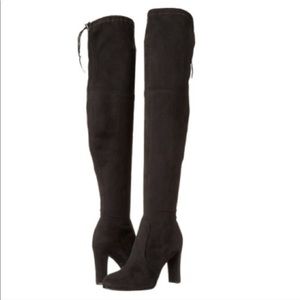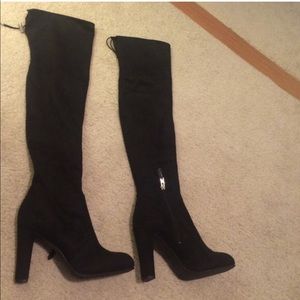 Worn one time, no signs of wear except one tiny scratch on the top of the foot. Color is black.
