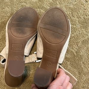 Sam Edelman beige heeled sandals. Soft suede with peep toe. Buckle around the ankle. Super cute and goes with almost anything. Worn a few times but they are in great condition.