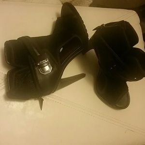 Black suede with buckle Sam Edelman sharp heels... with toe and cut outs... uggghhhh sad to sell this one... aprox 4 in heel. With zipper in back ... ! Paid 99.00