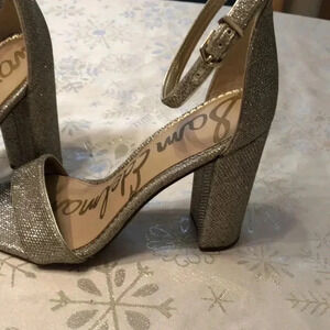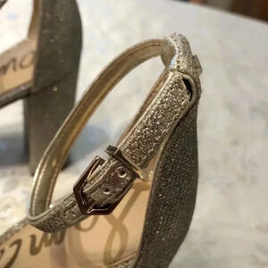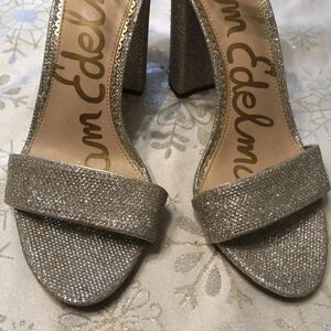Sam Edelman silver Yaro sparkly sandals with block heel. Ankle strap. Heel height is 4”. Size 7.