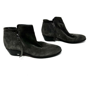 Sam Edelman size 6.5 booties dark gray leather upper side zip access both sides