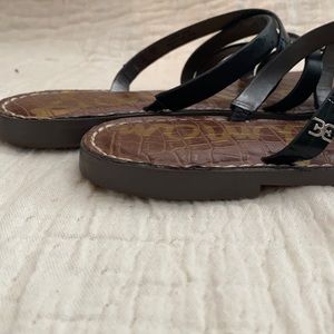 These are Sam Edelman nice strap he black sandals. Perfect for summer days they are a leather upper and an eight medium. No rips or tears. Still in great condition!