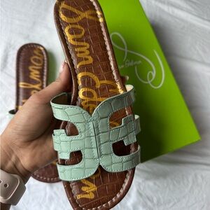 Pretty blue crocodile pattern slides, great for summer, wire just couple of times it’s very comfy then most flat slides in market