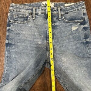 Sam Edelman's blue straight-leg jeans, crafted with a classic distressed effect. These jeans feature a relaxed fit with natural fading and wear, perfect for a casual, everyday look. In perfect condition.