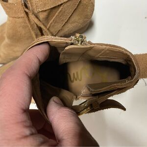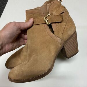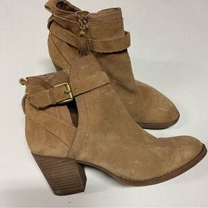 Sam Edelman tan Suede leather MAURINE WESTERN CUTOUT ANKLE BOOTS almond toe 9