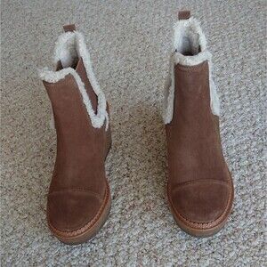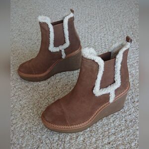 Sam Edelman tan suede with sherpa Reagan Wedge Boots size 7
