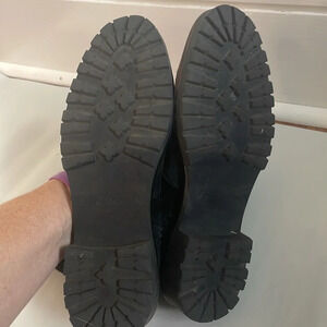 Sam Edelman women’s size 6.5 Jeanie Black Leather Boots faux fur lining multi