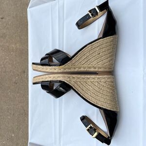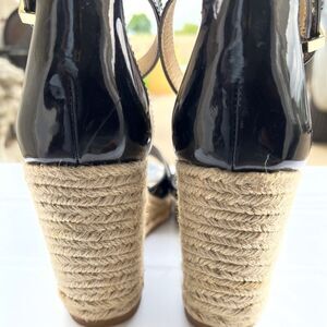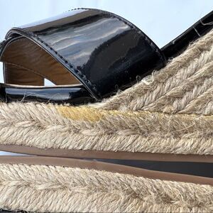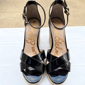 Sam Edelman Black Brenda Patent Leather Espadrilles Wedge Heel Sandal Size 8.5