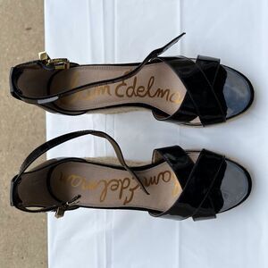 Sam Edelman Black Brenda Patent Leather Wedge Heel Sandal