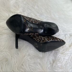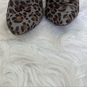Sam Edelman Chantel ankle booties size 9. Grey and brown leopard print cow hair with black leather backs. Size zippers and 3.75” stiletto heels. Few marks on leather and rubs on hair. Soles have minimal wear.