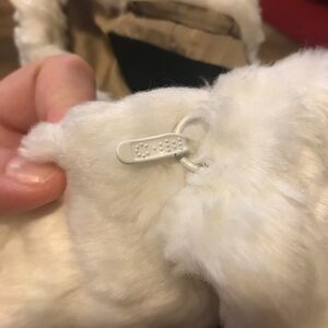 Like new! Beautiful collarless Sam Edelman coat with faux-fur leopard print! This coat is a creamy white, size medium, and comes with side pockets. The front closes uniquely with large hook and eye connectors, which I have photographed. Please see pictures.
