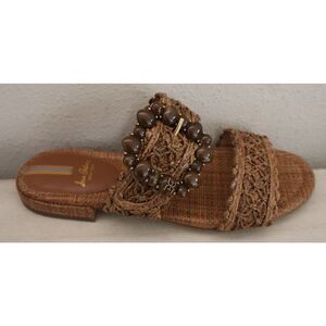 Sam Edelman J0187F2251 WMNs Sz 7M Dark Natural Raffia Elisa 2-Strap Sandals