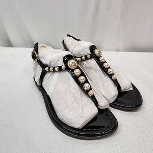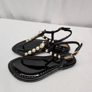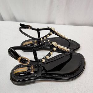 Sam Edelman Kids 11 Gigi Pearl Studded T-Strap Flat Sandals