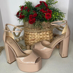 Sam Edelman Kori Sunrise Pink Faux Patent Leather Platform Sandals Sz 9