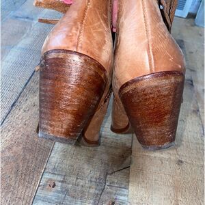 Very cute boho bootie, very versatile it can be worn folded over or fully extended. Stacked wood heel. Runs small about a half size small..