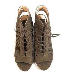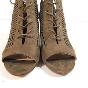 Sam Edelman Rocco Booties Peep Toe Lace-Up Suede Look Block Heel Sandals