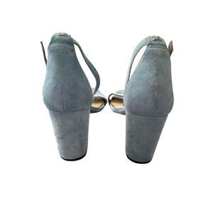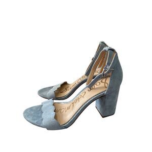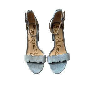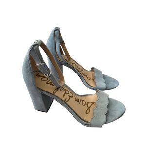 Sam Edelman Sandals Size 7.5 Blue Leather Open Toe Block Heel Ankle Strap