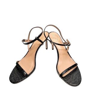 Sam Edelman Sandals Size 9.5 Black Croc Embossed Dara Open Toe Heels