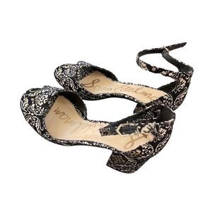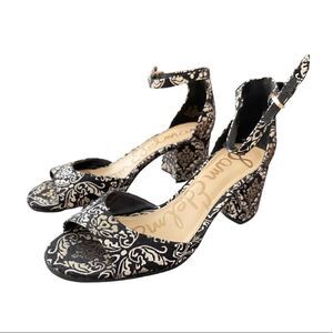 Sam Edelman Susie Black Metallic Jacquard Pattern Ankle Strap Heels Size 10