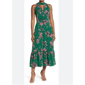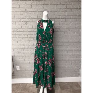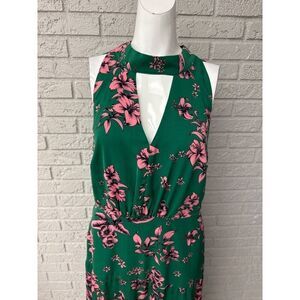Sam Edelman Women Green With Pink Floral Cut-Out Midi Dress Size 10