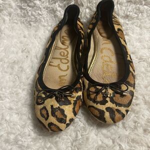 Sam Edelman leather calf hair Leopard print slip on Ballerina Flats SZ 7