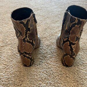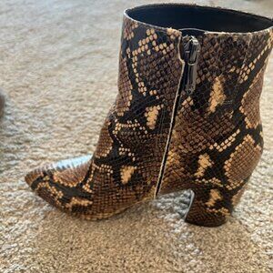 Be stylish this fall with these snake embossed booties. Booties have a zipper on the side for ease of putting on. Booties are in good condition.