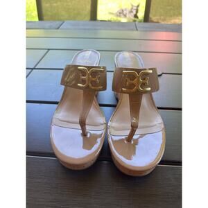 Item: Sam Eldeman Yardlie Tan Leather Wedge Strap Slip On Open Toe Heeled Sandals