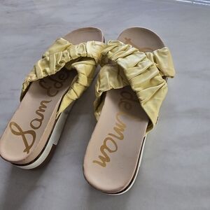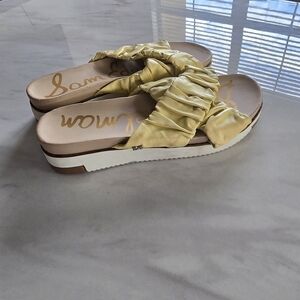 Sam Elderman Sandal Womens Sz 7 Gold Slippers Aliana Sport Comfort Flaw