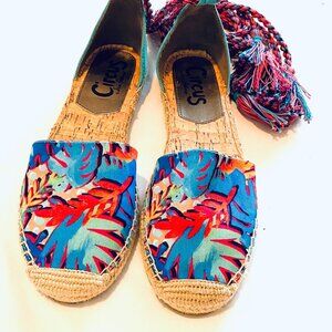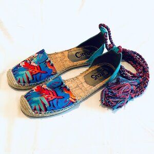 Sam Elelman Circus Lenora ankle wrap espadrilles Womens 9 colorful canvas jute